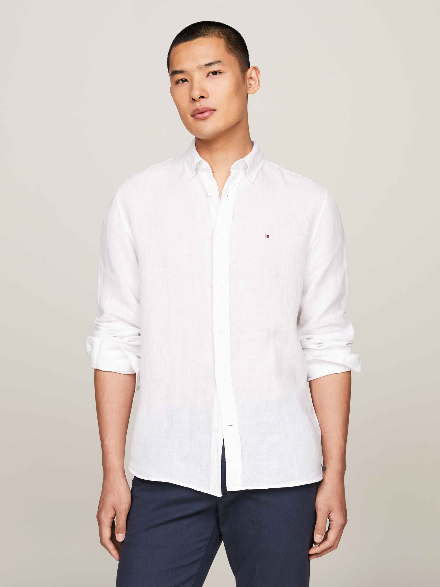 Langærmet skjorte fra Tommy Hilfiger i 100% hør med knappelukning.Om produktet