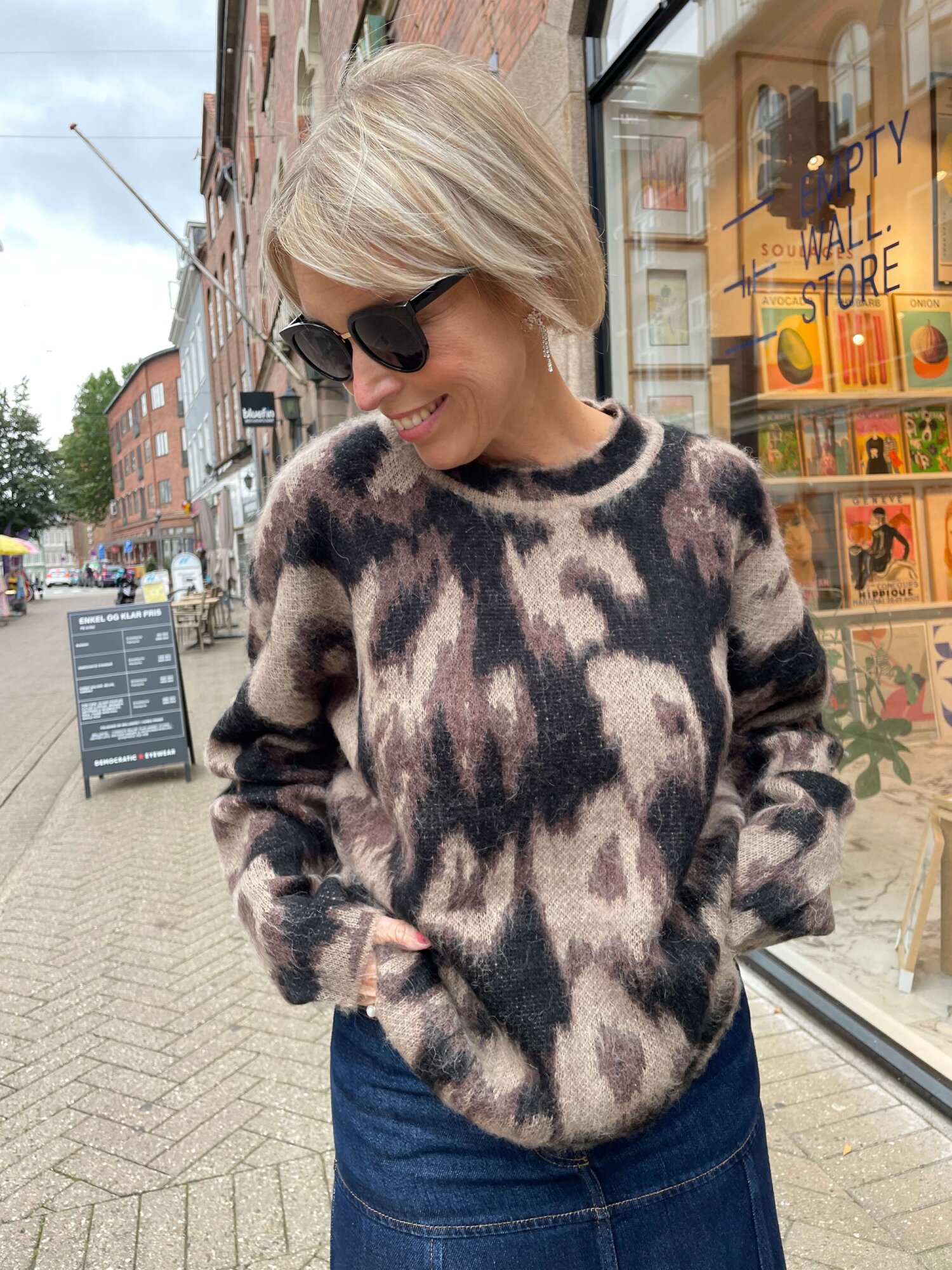 Blød strik med et smukt all-over print. Denne strik er designet til en løs pasform.Om produktet