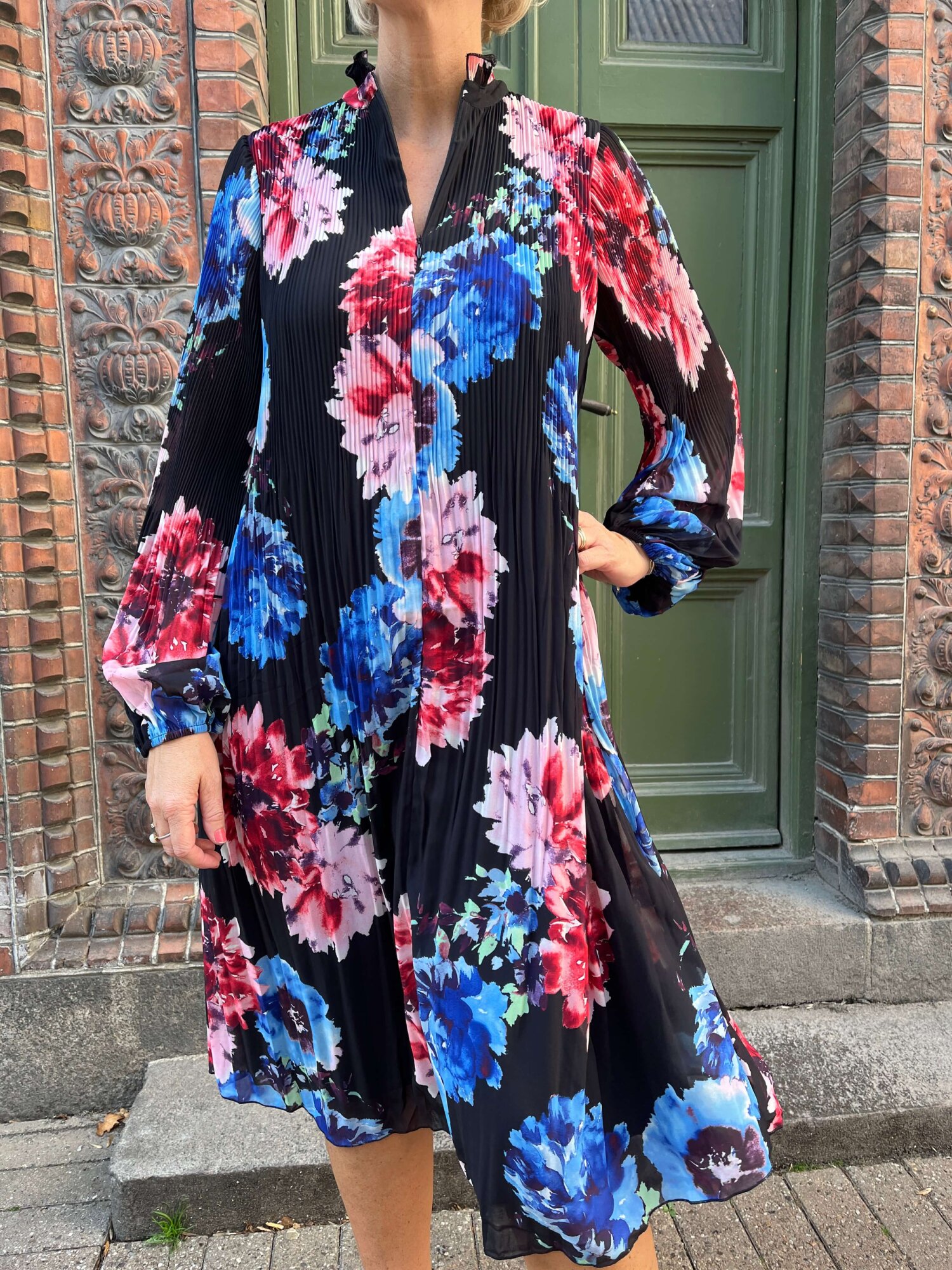 Løs, plisseret kjole i cool print, med flæsedetaljer og skjult lynlåslukning i halsen.Om produktet