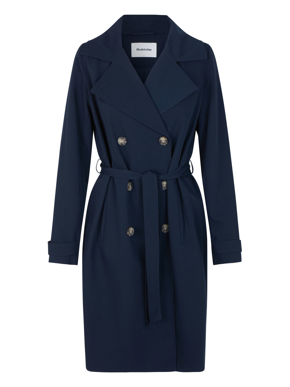 Smuk jakke fra Modström med i et klassisk udtryk bred krave, bælte i livet og knaplukning. Hiro jacket er perfekt som overgangsjakke fra vinter til forår. Jakken har en rummelig pasform. Vi anbefaler at gå en størrelse ned.Om produktet