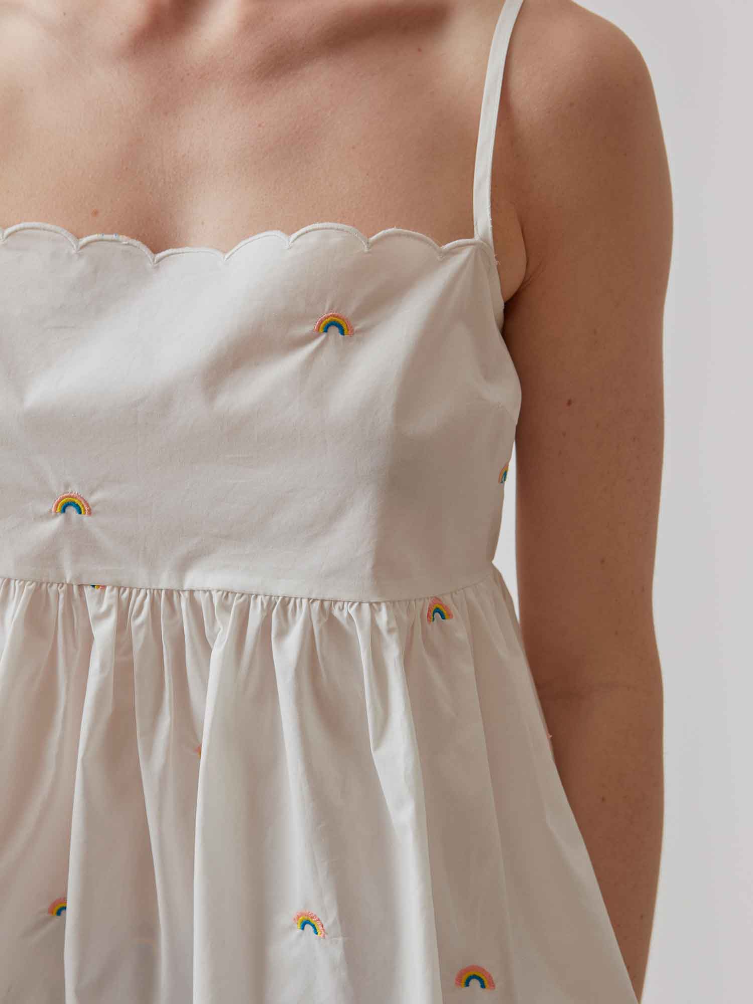 Let kjole fra Modström uden ærmer i økologisk bomuldskvalitet. Pernille strap kjolen har smalle, justerbare stropper, en tætsiddende pasform for oven og vid underdel med blødt fald.Om produktet