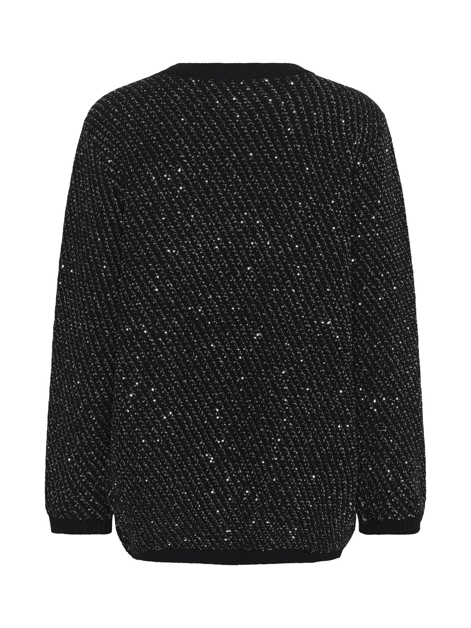 Cardigan med V-udskæring, knaplukning og forlommer. Strikket med metalliske tråde og pailletter for et diskret skær, perfekt til både afslappede lag-på-lag styles og aftenlooks.Om produktet