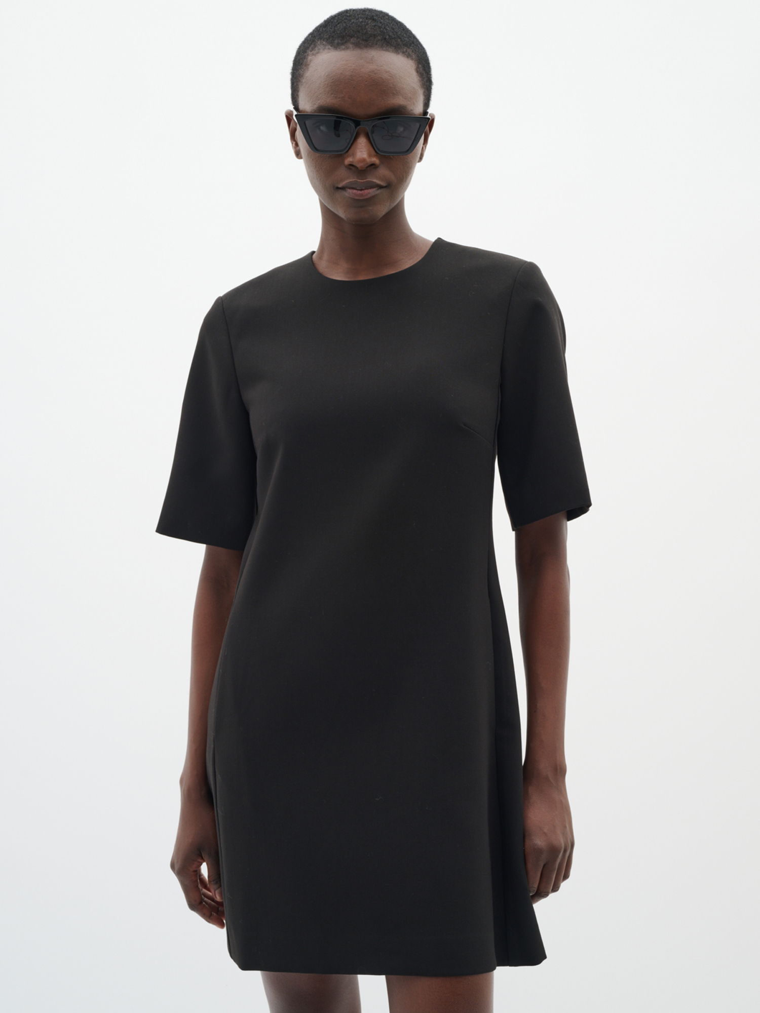 Minikjole med korte ærmer har en afslappet, lige pasform og rund hals. Komfortabelt og alsidigt design, der fungerer til både hverdags- og aftensbrug.Om produktet