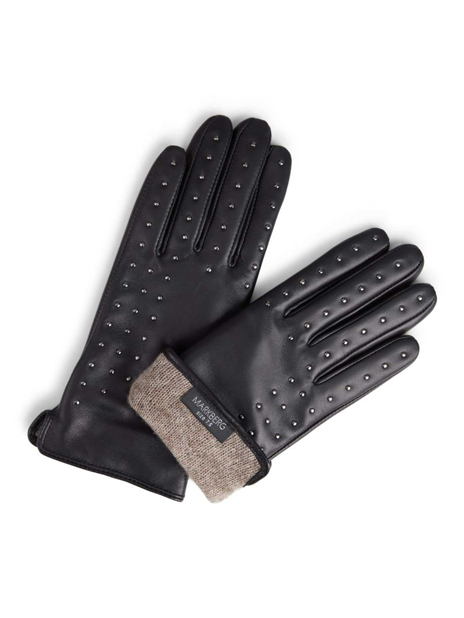 Lækre lammeskindshandsker fra Markberg. Handskerne har et cool look med nitter. På pegefingeren og tommelfingeren er der touch screen funktion, så de kan bruges på smartphones og tablets.Om produktet