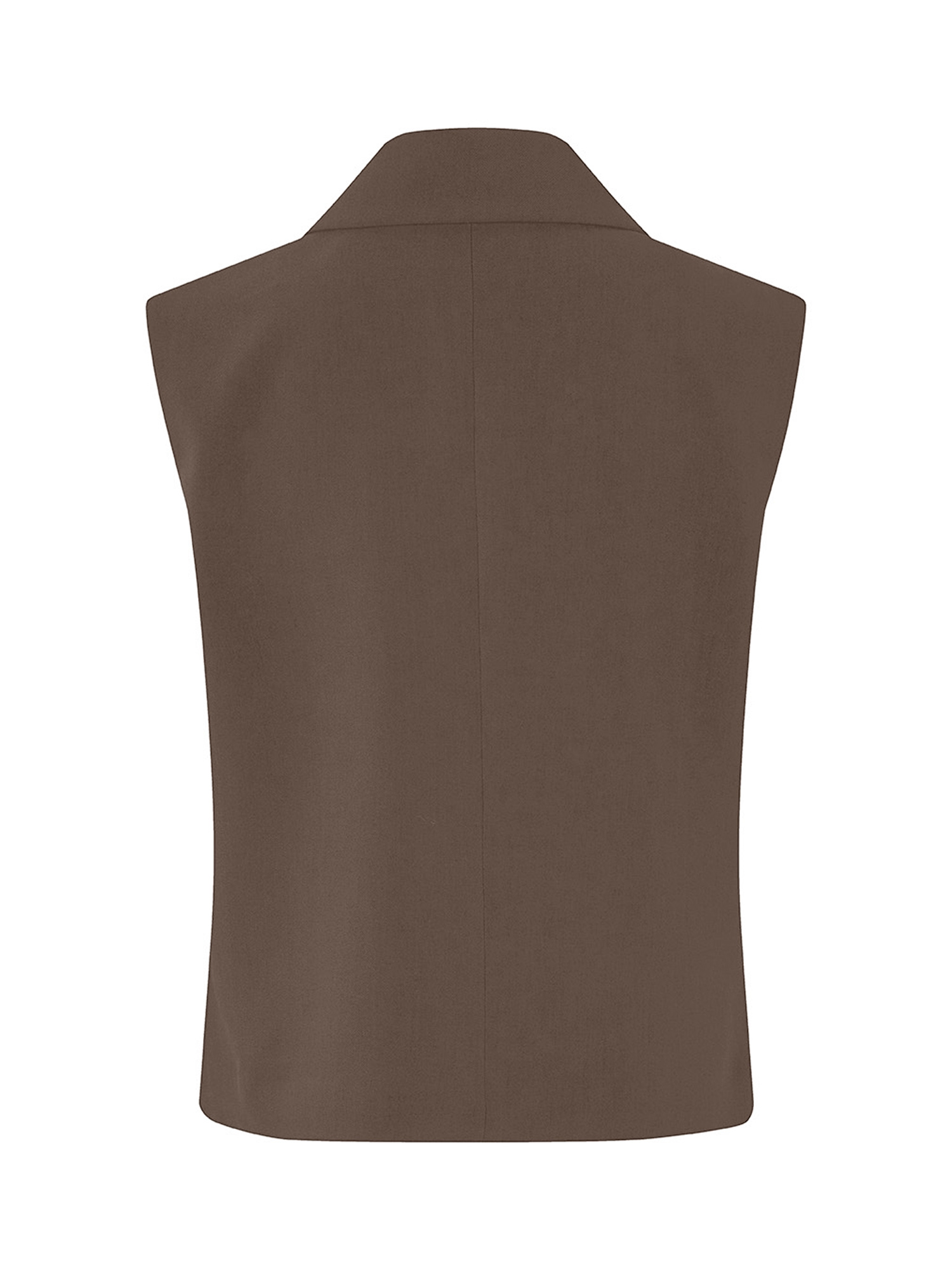 Løs vest i brun med krave i vores klassiske gale materiale. Galemd vest er ærmeløs og har en knappelukning fortil.Om produktet