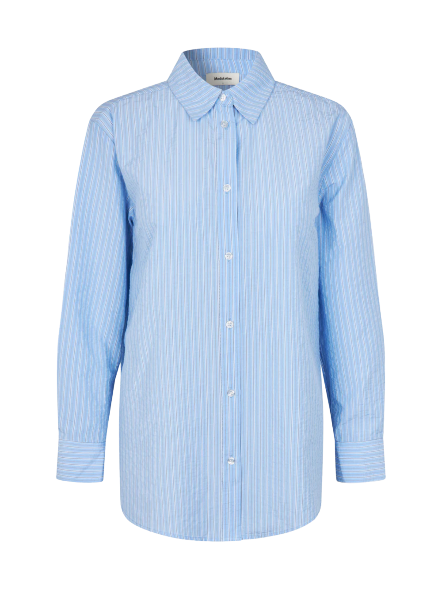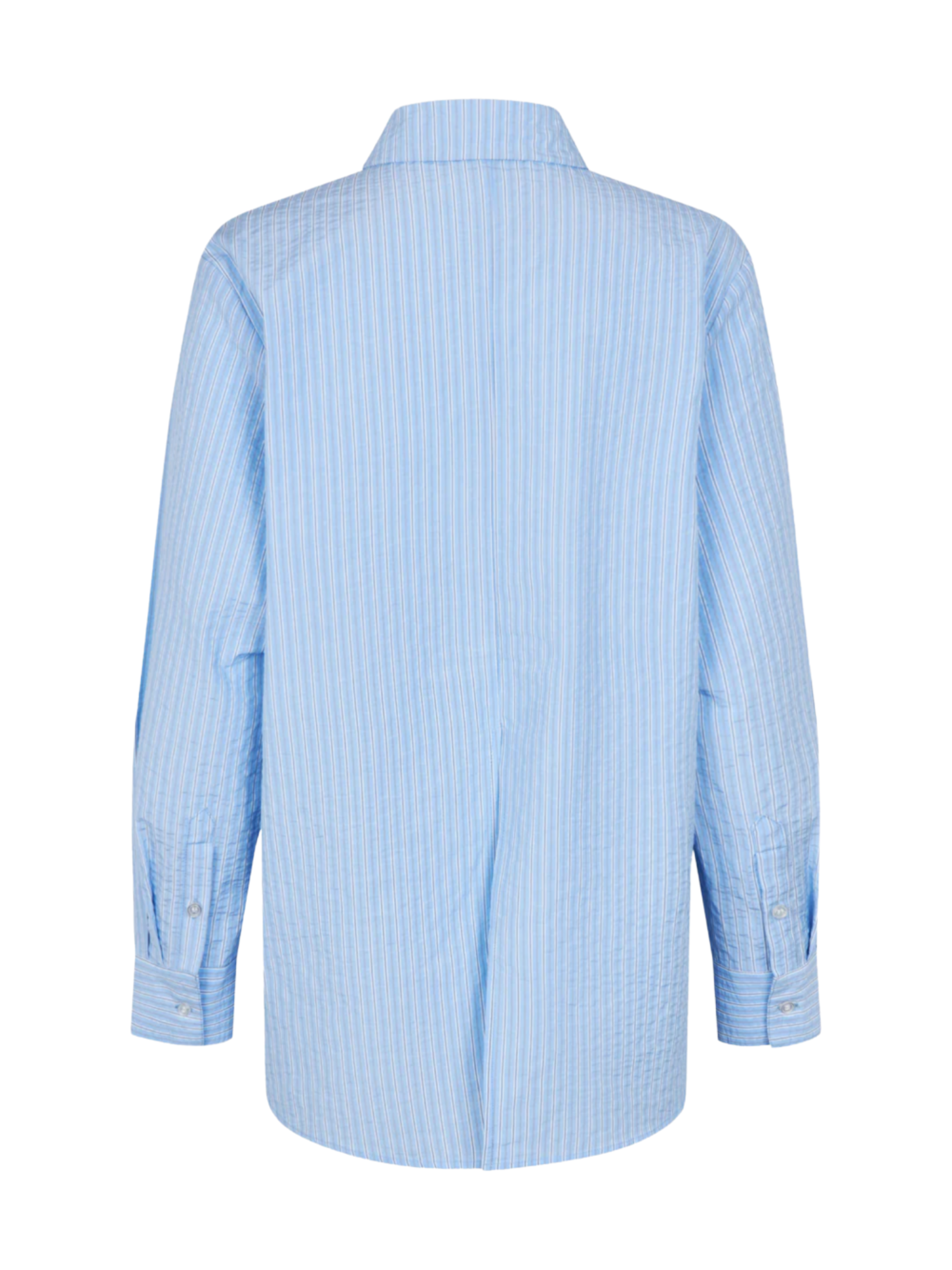Lang, klassisk blå skjorte med striber. ViggeMD Stripe Shirt har tidløse detaljer som krave, knappelukning, manchetter og en høj slids bagpå som tilføjer et moderne twist til det ellers enkle design.Om produktet