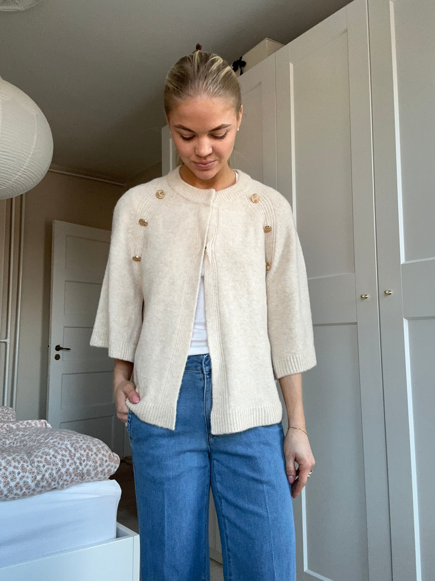 Strik kappe fra Continue med guldknapperOm produktet